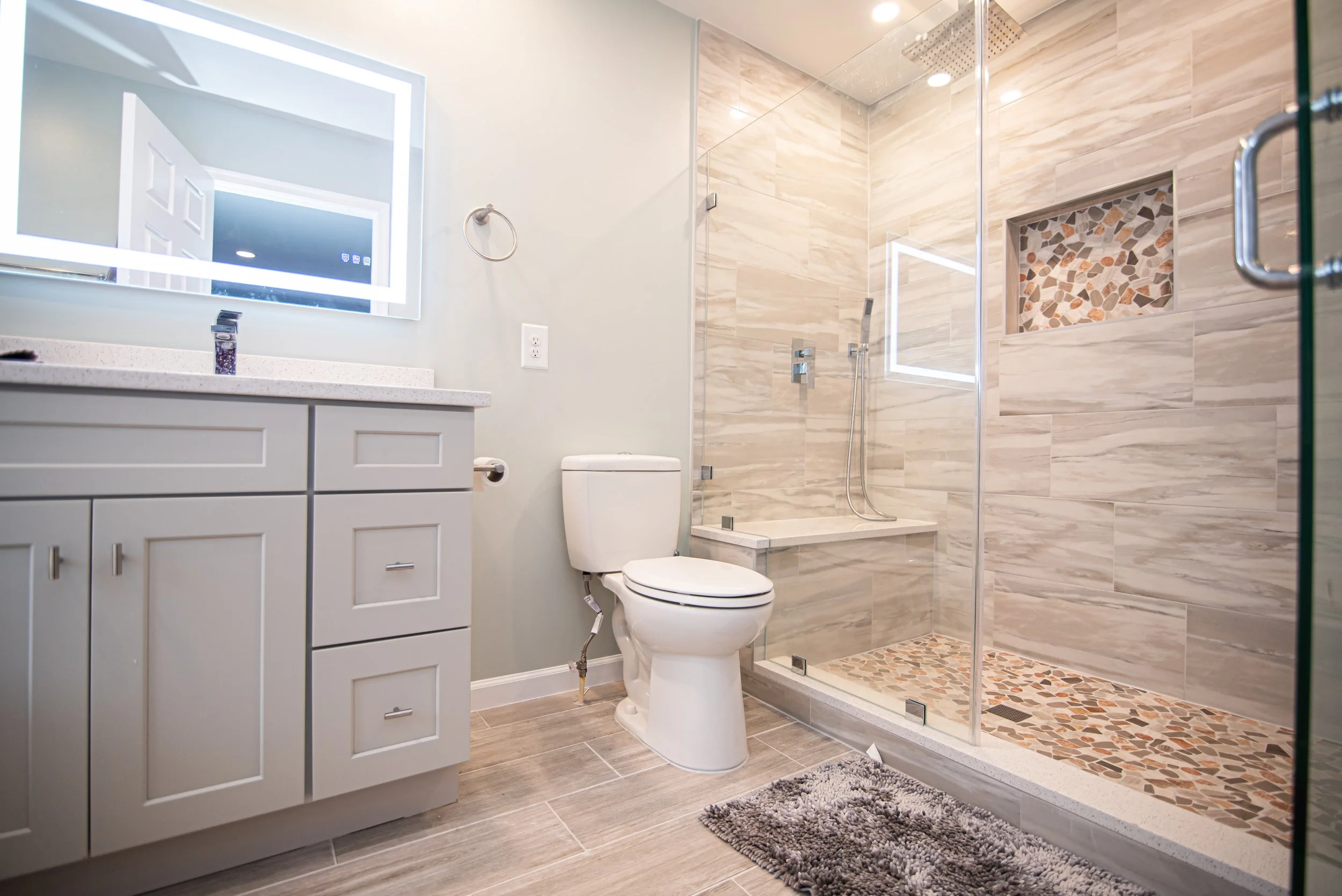 “J&M Tile, Granite and Marble installed a basement bathroom in my home recently - December 2020. I am completely satisfied with J&M Tile for this job. The bathroom installation provided by Javier, Julio and the entire team was beyond my expectation. I cannot say enough about their professionalism and quality of work! Those of you who are looking for this type of service, you cannot go wrong with this company. I highly recommend them! ”